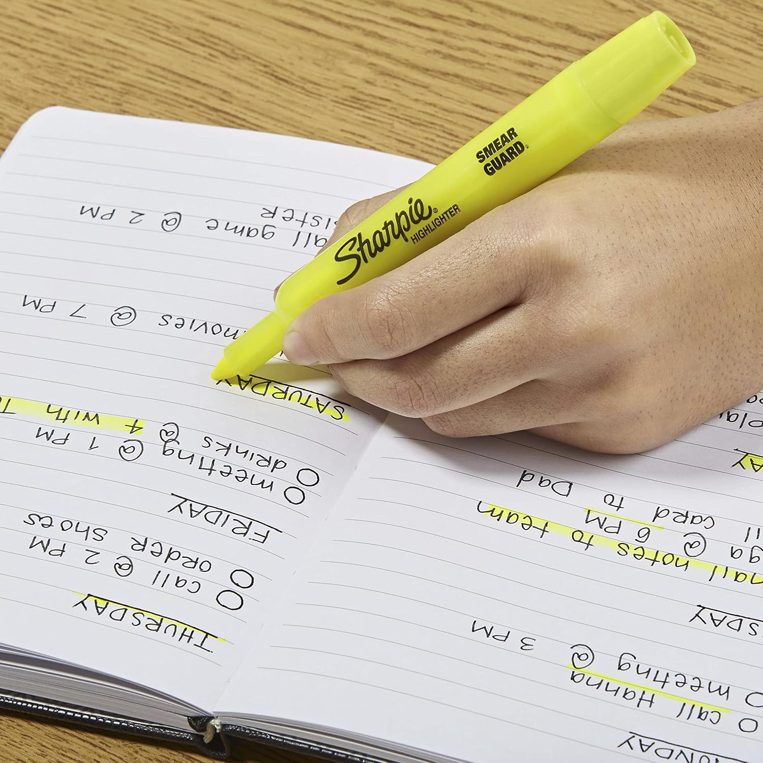 - Sharpie Tank Highlighters with wide barrel and large ink supply that delivers dependable highlighting